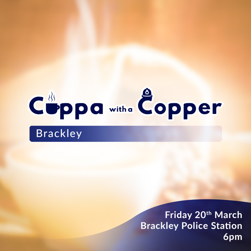 Officers from the local neighbourhood policing team will be holding a ‘Cuppa with a Copper’ on Friday 20th March at 6pm.